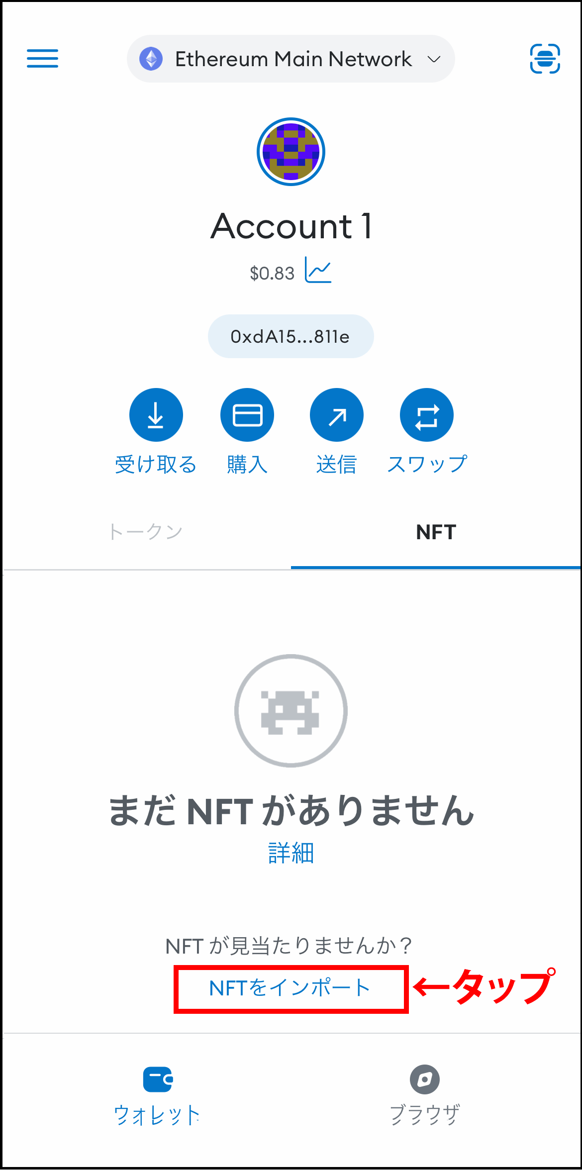 ※「インポート」からNFTが表示されるまでに時間がかかることがあります。